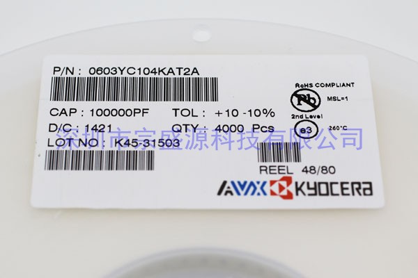 AVX陶瓷电容 0603 16V 0.1UF 0603YC104KAT2A