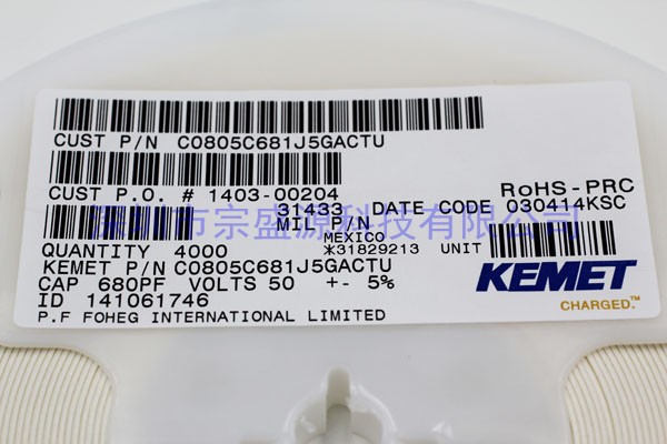 KEMET陶瓷电容 0805 50V 0.68UF C0805C681J5GACTU